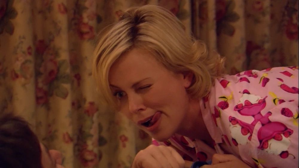 - Fox Network did not want Charlize Theron wearing so many hats, as they felt it might stop people from recognizing her as the Academy Award winning actress. The writers had Charlize use the hats to seem like they contained cameras, recording Michael's actions.